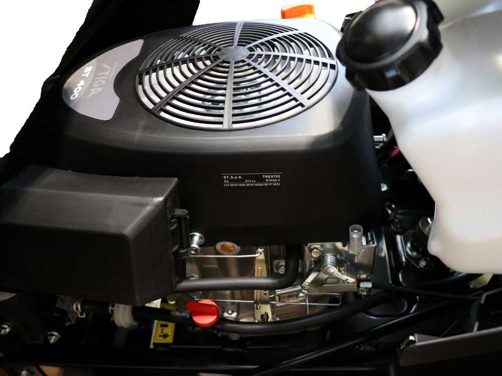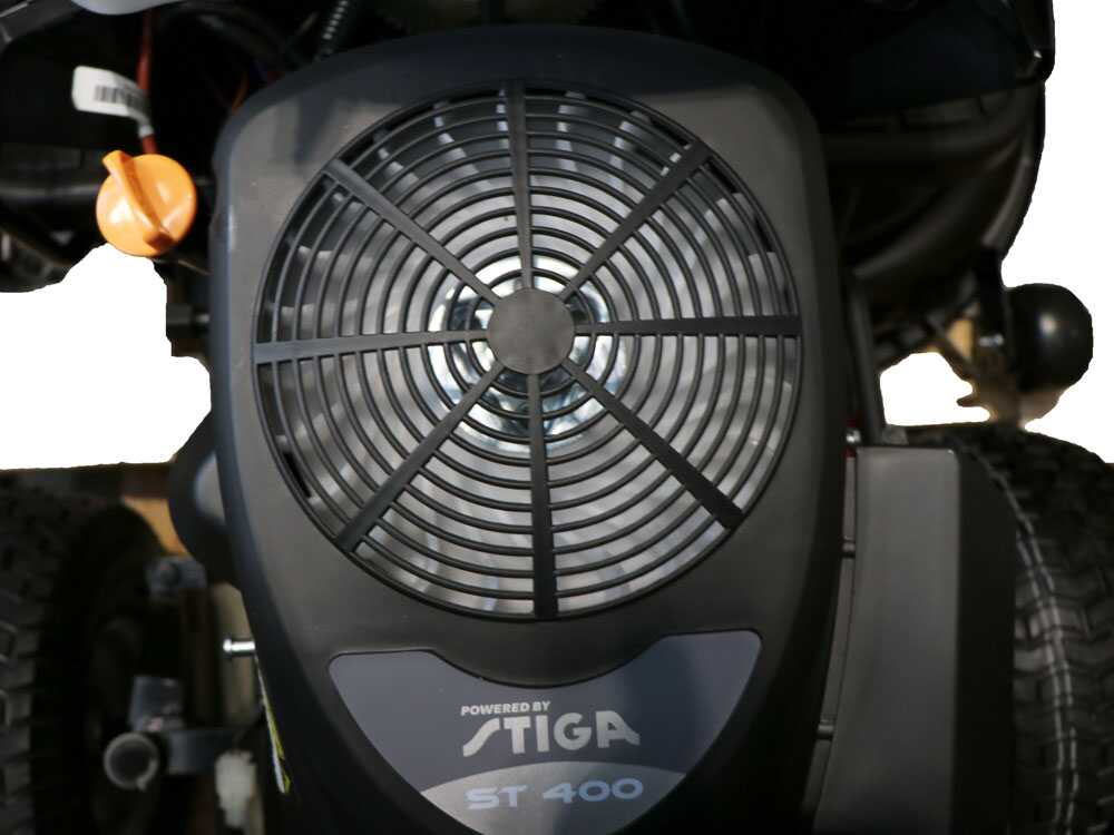 El tractor cortacésped está equipado con un motor Stiga ST 400 de 414 cc, potente y de bajas emisiones, para un rendimiento equilibrado e impecable. Adecuado para superficies de corte hasta 5000 m2.