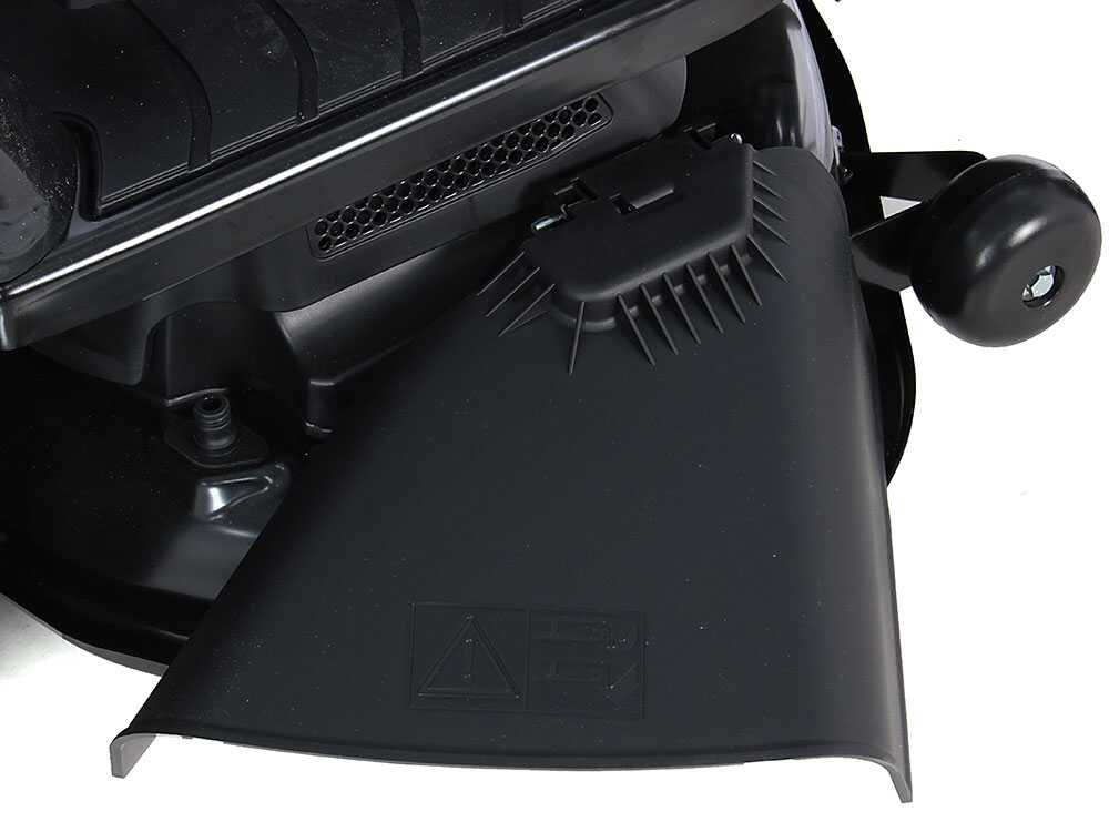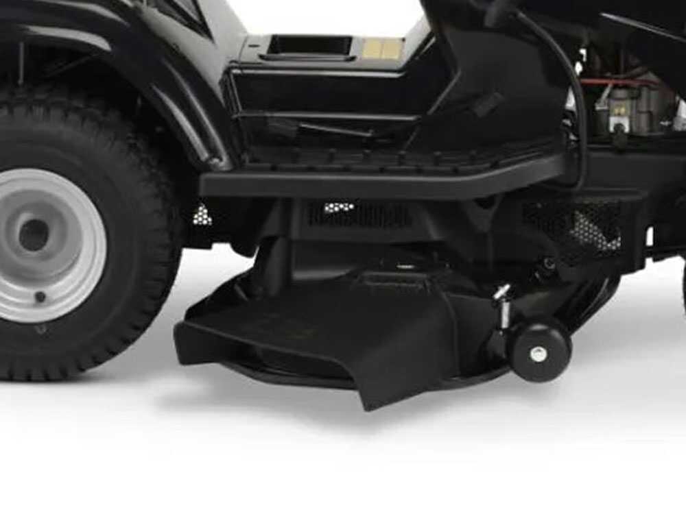 El césped se corta por medio del plato de corte de 98 cm, que dispone de dos cuchillas de acero con accionamiento electromagnético. A continuación, la hierba se descarga lateralmente gracias al deflector montado de serie en el plato de corte.