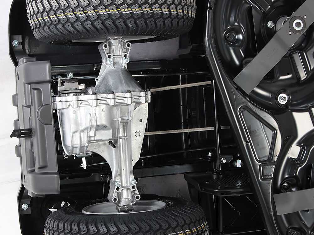 Transmisión hidrostática, le permite avanzar o retroceder, simplemente presionando los dos pedales ubicados en el plato de corte. Según la presión que ejerce sobre los pedales, la velocidad de avance y la velocidad de retroceso aumentar respectivamente. Con el pedal de parada, de lo contrario, el tractor cortacésped se detiene.