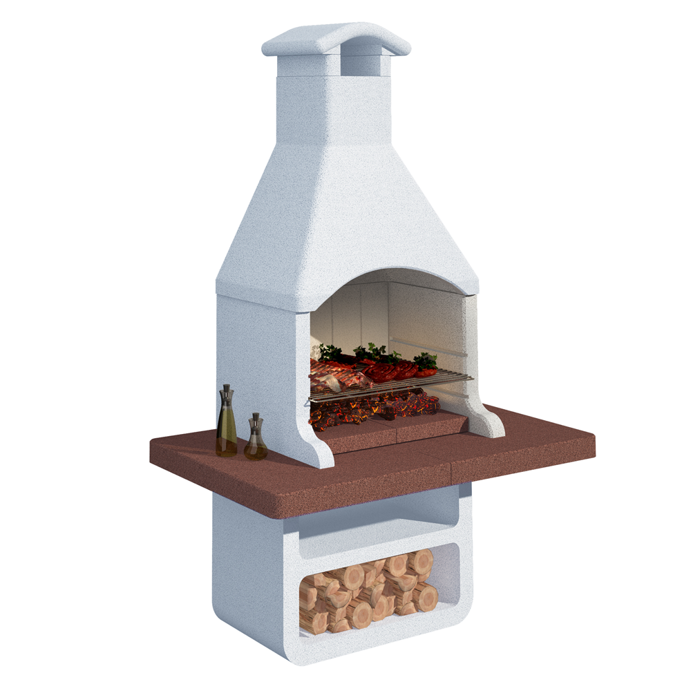 La estructura de la barbacoa está hecha de hormigón refractario, lo que la hace resistente al desgaste, la intemperie y las altas temperaturas. La campana, la base, la zona de cocción, todas las partes de la barbacoa están fabricadas con este material de alta calidad.