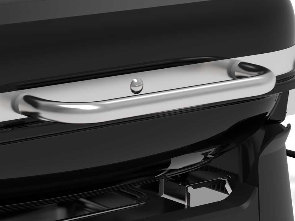 La tapa está equipada con un cómodo asa resistente al calor que facilita su apertura y el control de la cocción. El mando de ajuste de la temperatura permite ajustar con precisión el nivel de calor deseado, hasta 315 °C, adaptándose a diferentes necesidades de cocción, desde un asado rápido hasta un dorado más intenso.