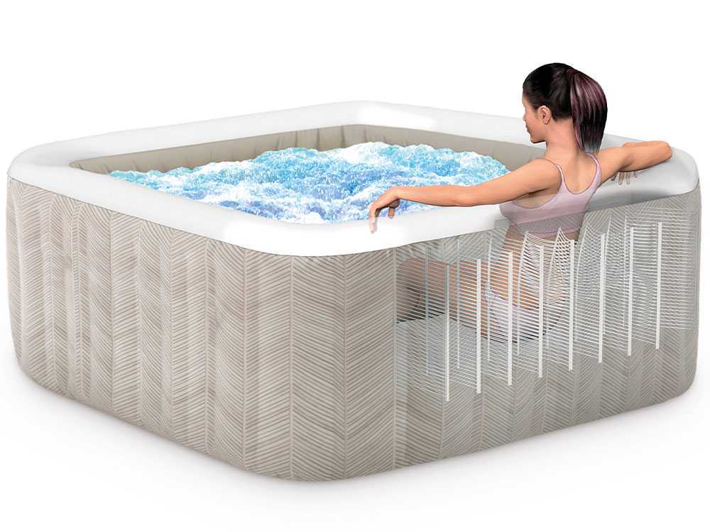 La tecnología innovadora de burbujas de aire caliente añade un nivel adicional de confort, haciendo que el spa Intex sea aún más acogedor y agradable no solo durante los meses de verano, sino también en primavera y otoño.