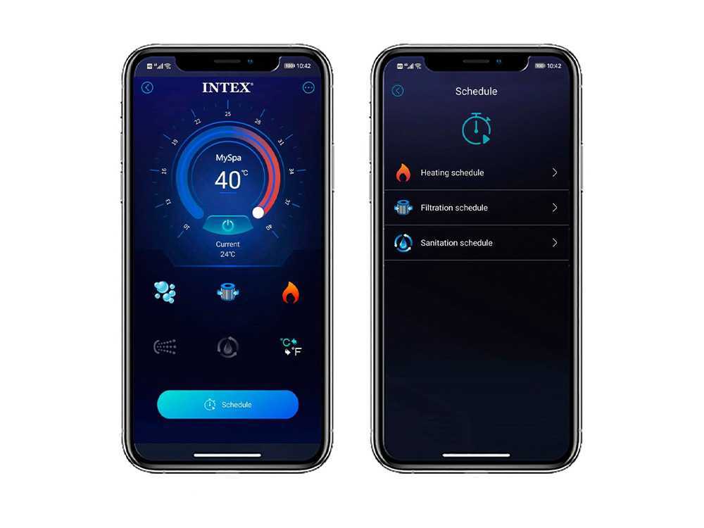 Planifica y personaliza tu spa directamente desde tu móvil utilizando la aplicación Intex y la conexión Wi-Fi.